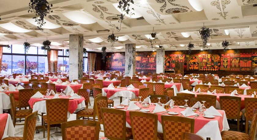 يمكن للنزلاء الاستمتاع بوجبات الفطور والغداء والعشاء الغنية، سواء في الداخل في المطعم المليئ بالأنوار أو في الخارج عند حوض السباحة.