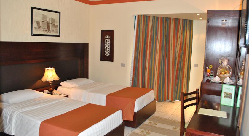 تحتوي الغرف المكيفة الواسعة على تلفزيون مع قنوات فضائية وميني بار وشرفة أو تراس خاصين، وتوفر جميع الغرف إطلالات على المسبح والحدائق، فيما يوفر بعضها إطلالات على جبال سيناء.